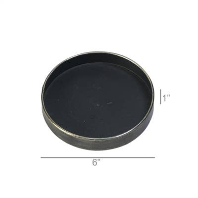 Dark black galvanized trays with a subtle brass rim are the epitome of versatility, they make great coasters, candle trivets, bedside catchalls or when paired with a glass dome they become an instant vitrine.